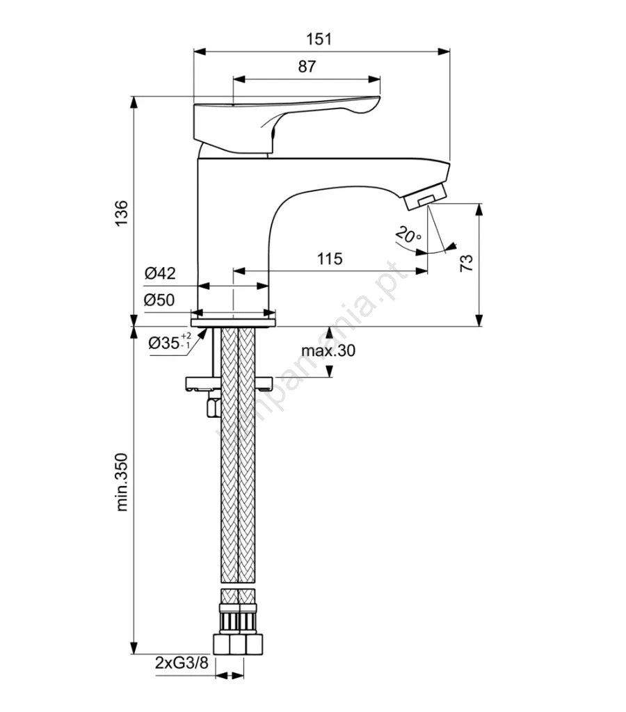 • A ligação é feita com uma mangueira flexível com dimensão G 3/8".