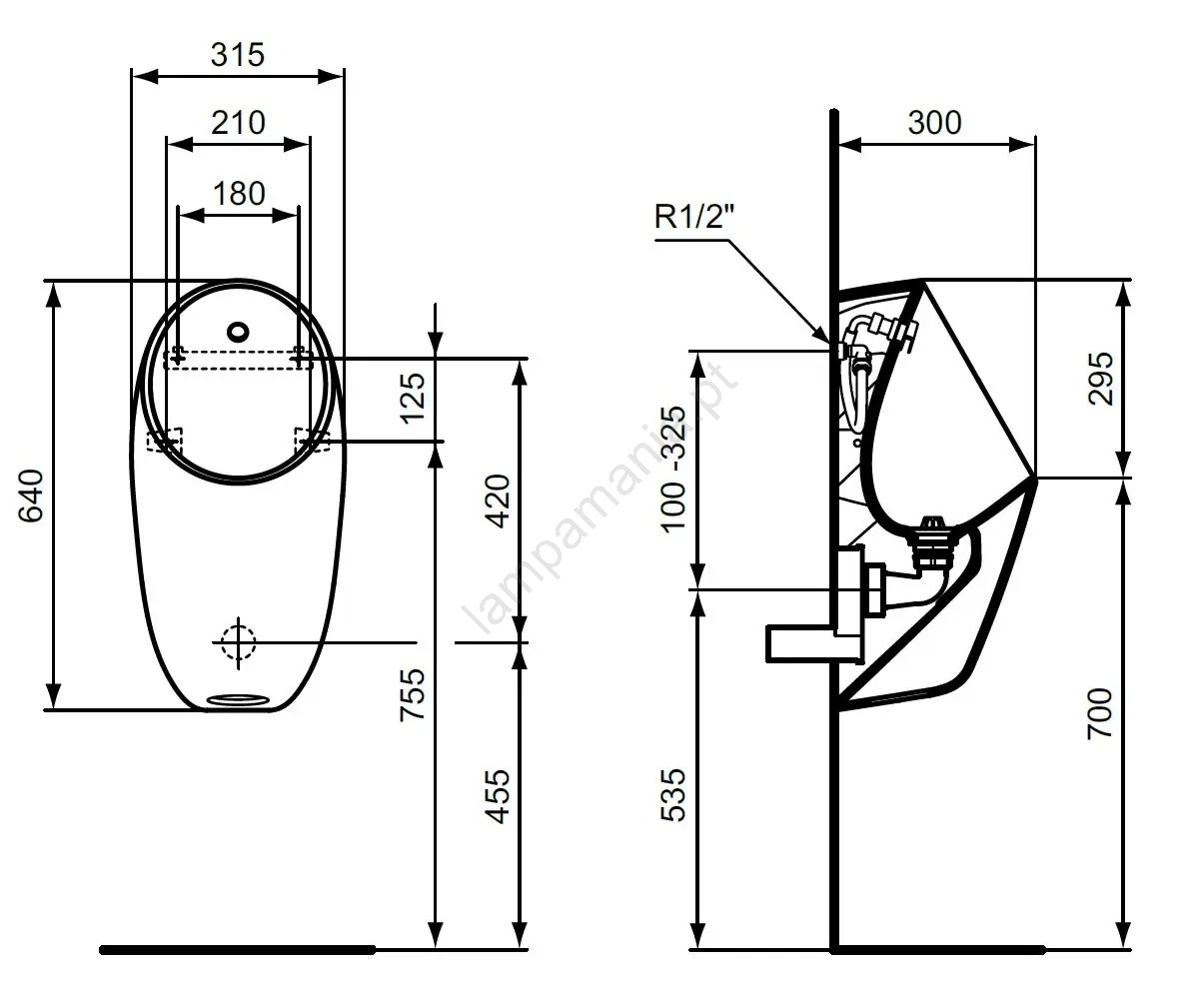 Ideal Standard E253701 - Pisoár I.LIFE, ligação de água traseira, saída traseira, cerâmica/branco