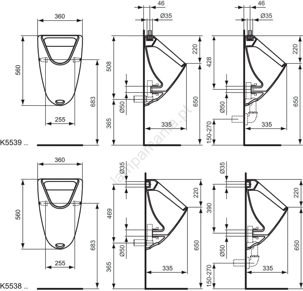 • O mictório é compatível com todos os sistemas de descarga comuns.