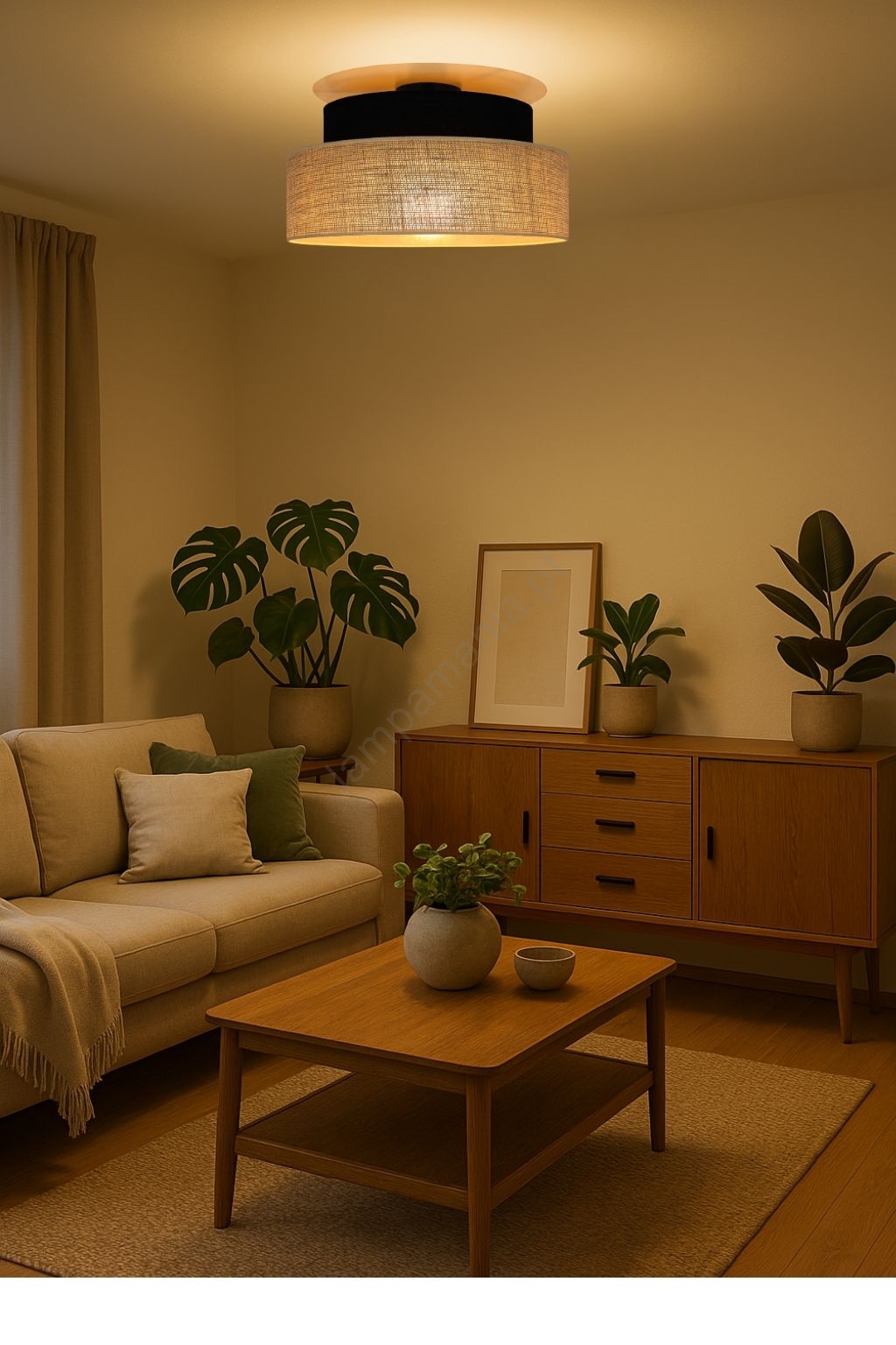 • Iluminação de teto BOHO 1xE27/60W/230V diâmetro 40 cm preto/vime