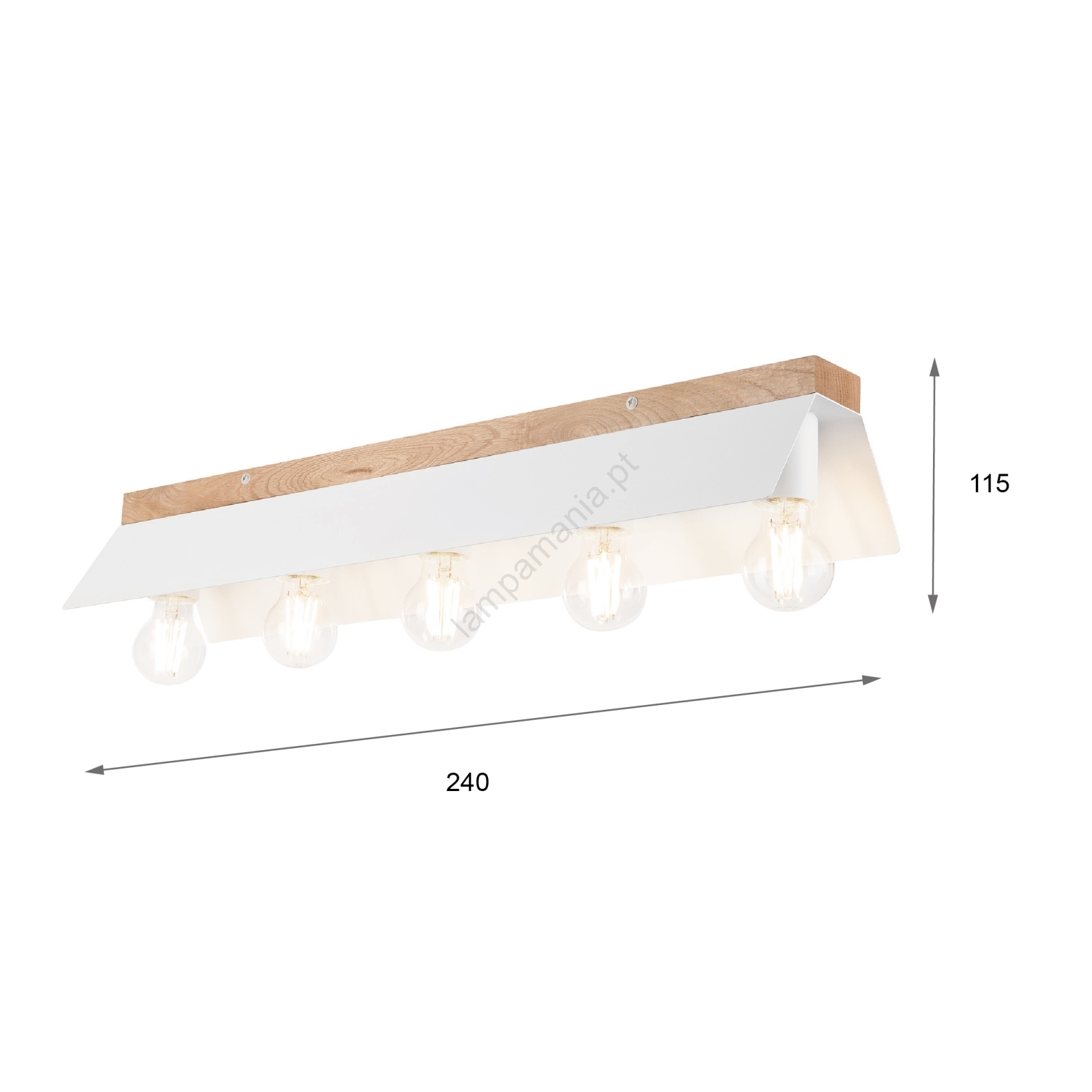 Iluminação de teto ESME 5xE27/15W/230V branco/carvalho caracteriza-se por um design agradável e funcional.  Uma lâmpada com casquilho E27 é adequada para a iluminação Aqui, pode comprar outras lâmpadas a preços vantajosos. Terá um complemento interessante para a sua casa.