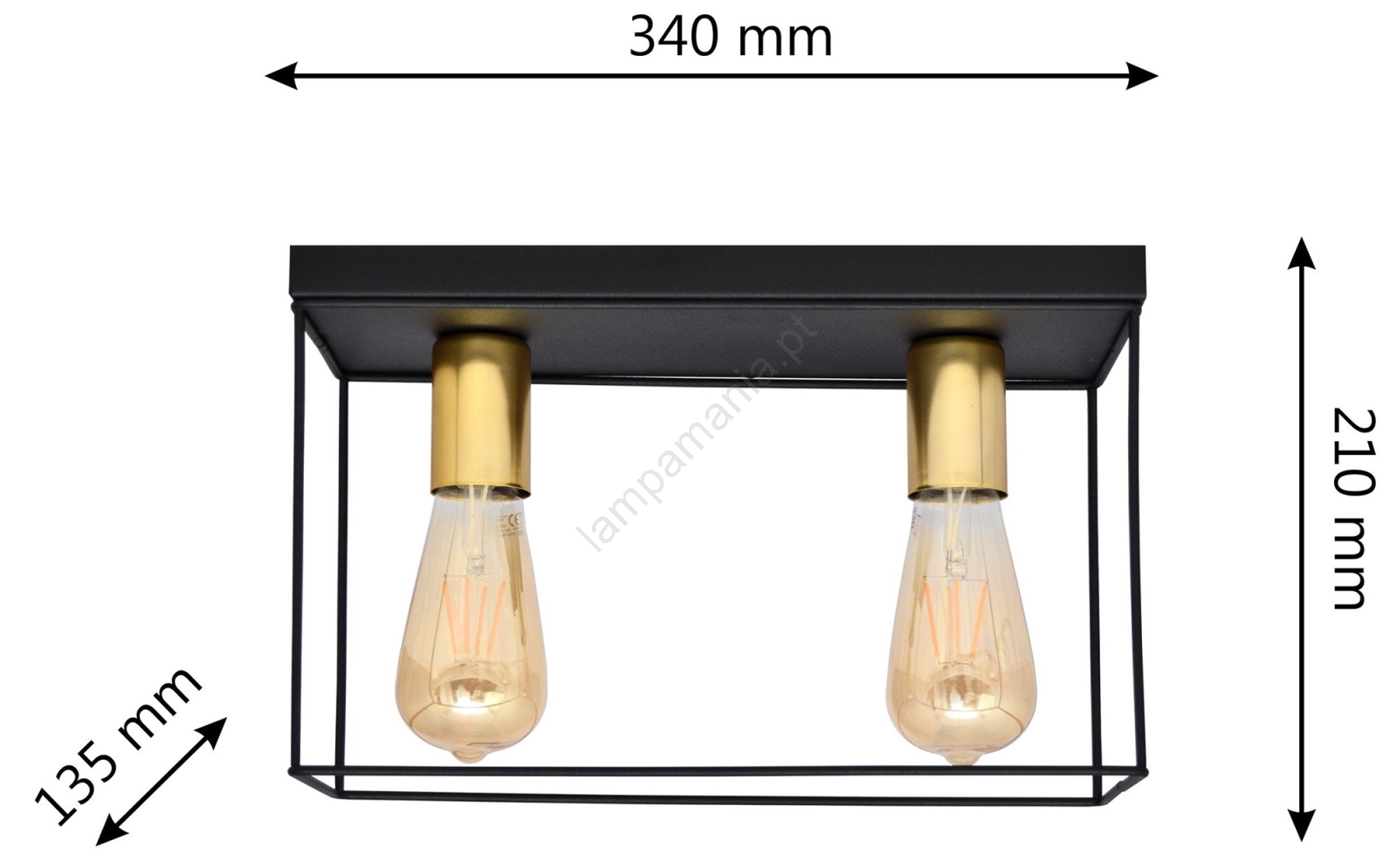 • Iluminação de teto FINN 2xE27/15W/230V preto/dourada