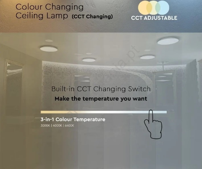 • A função 3 em 1 dá ao utilizador a opção de escolher entre 3 temperaturas de luz diferentes.