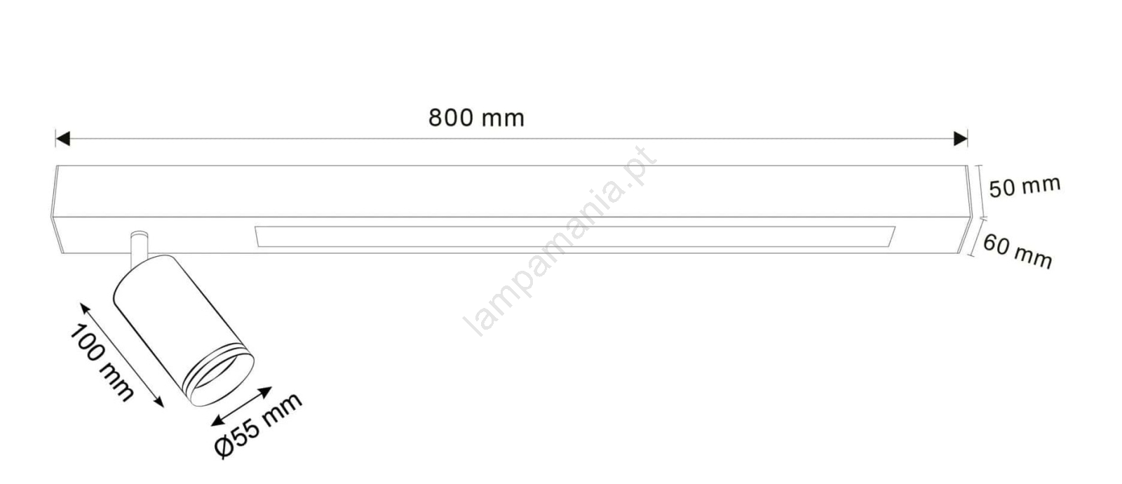• Possibilidade de controlar separadamente a fonte LED e o refletor pontual através de um interruptor bipolar.