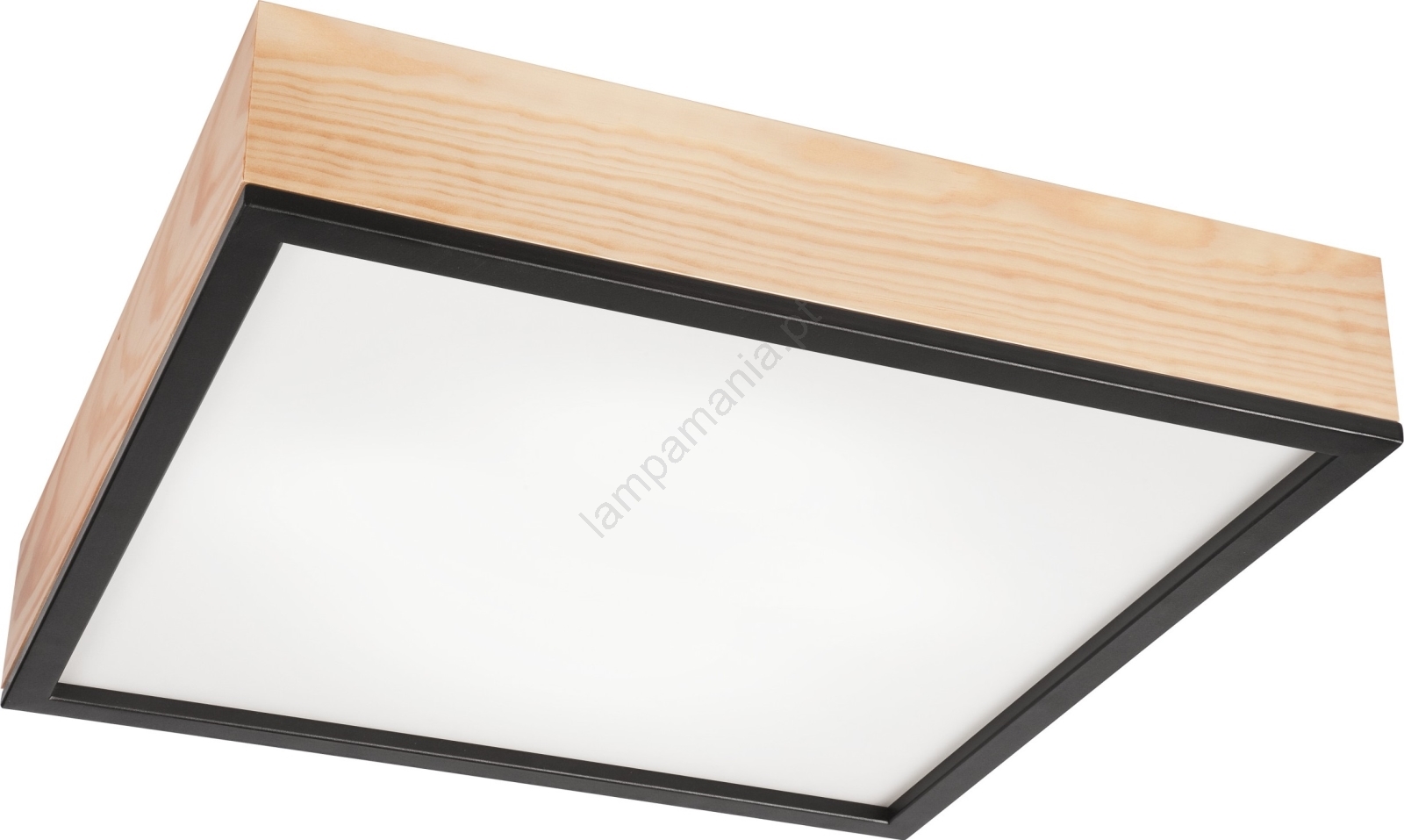 Iluminação de teto NATURAL SQUARE 4xE27/15W/230V 48x48 cm pinho/preto caracteriza-se por um design agradável e funcional.  Uma lâmpada com casquilho E27 é adequada para a iluminação Aqui, pode comprar outras lâmpadas a preços vantajosos. Terá um complemento interessante para a sua casa.