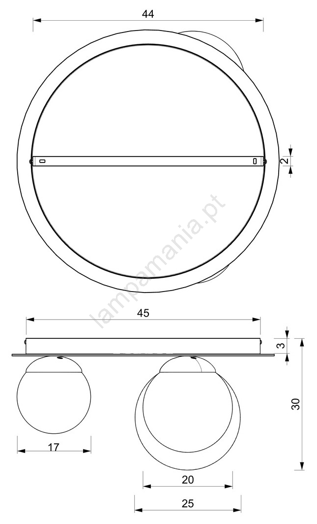 Iluminação de teto PLATO 2xE14/40W/230V + 1xE27/60W/230V