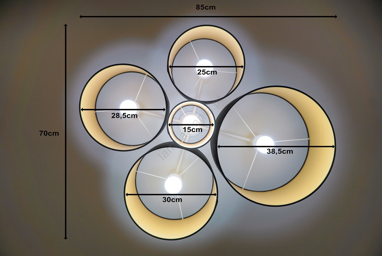 • Duolla - Iluminação de teto ROLLER PENTO 5xE27/60W/230V preto/dourada