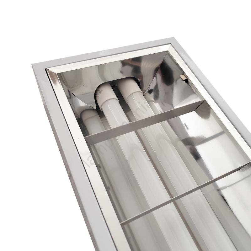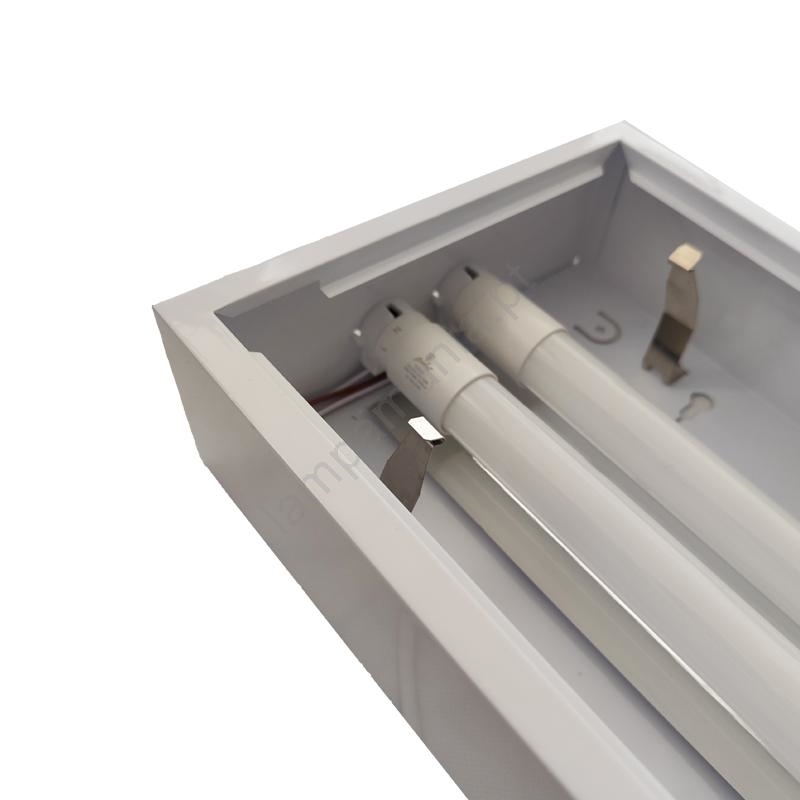 • A luminária é compatível com tubos LED de conexão unilateral com soquete T8 (2 x 120 cm T8/G13).