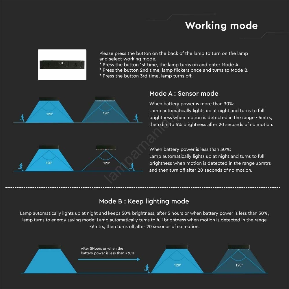 • Iluminação solar de parede LED com sensor LED/6W/3,7V IP65 4000K 3000 mAh preto