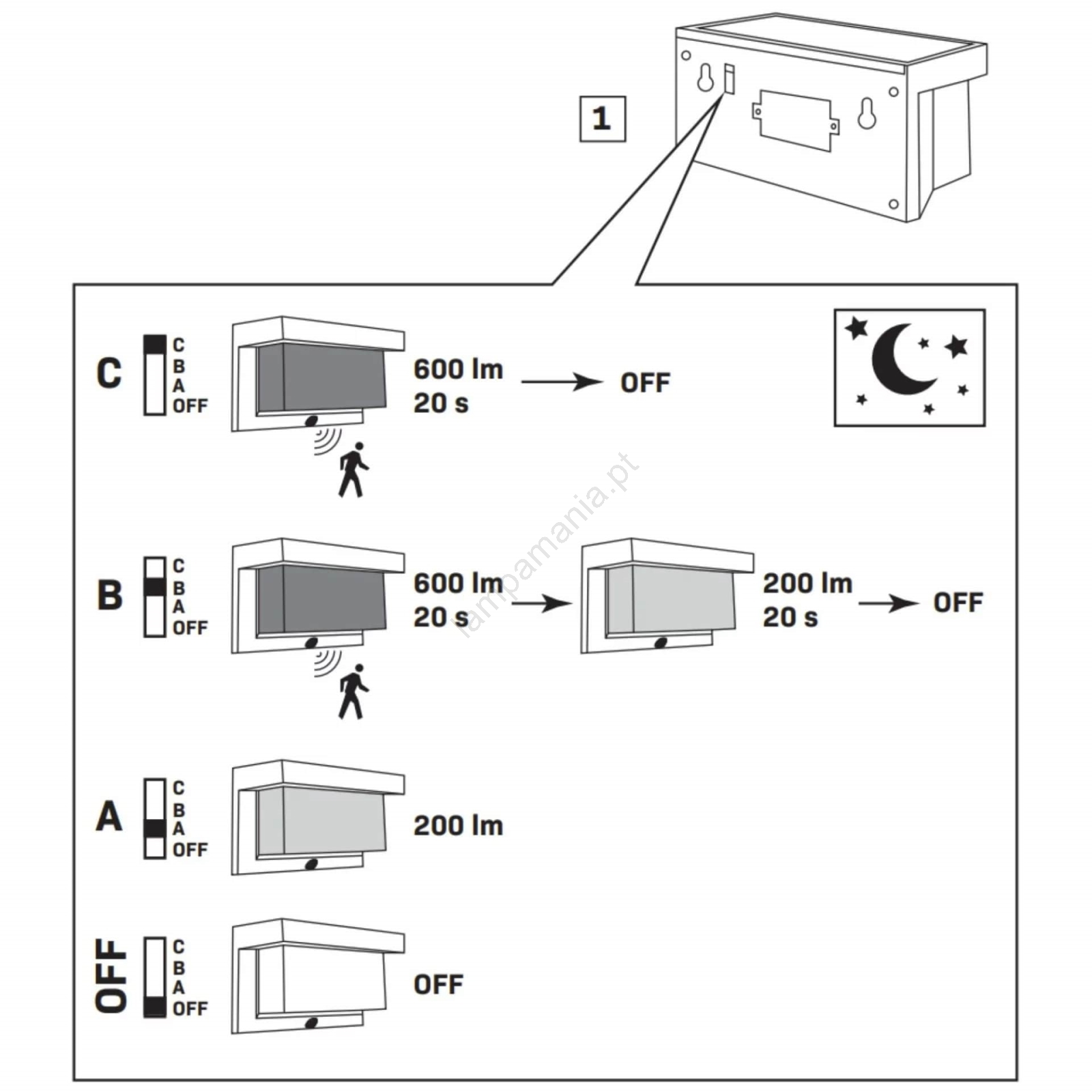 Luminária de parede solar LED com sensor TONY LED/3,7V 1800 mAh IP44