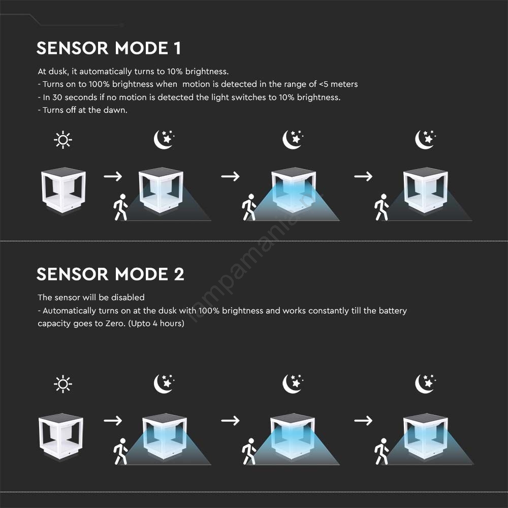 • Luz Solar LED com sensor LED/2W/5,5V 3000K IP65 2600 mAh preto