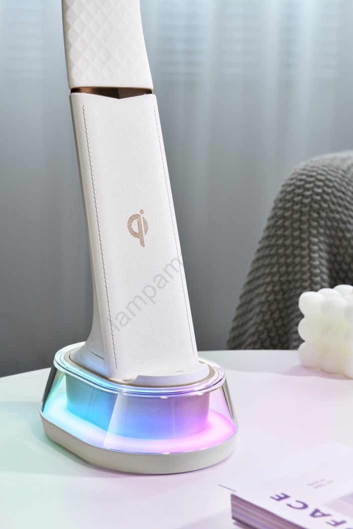 • Carregamento sem fio Qi integrado no corpo da lâmpada.