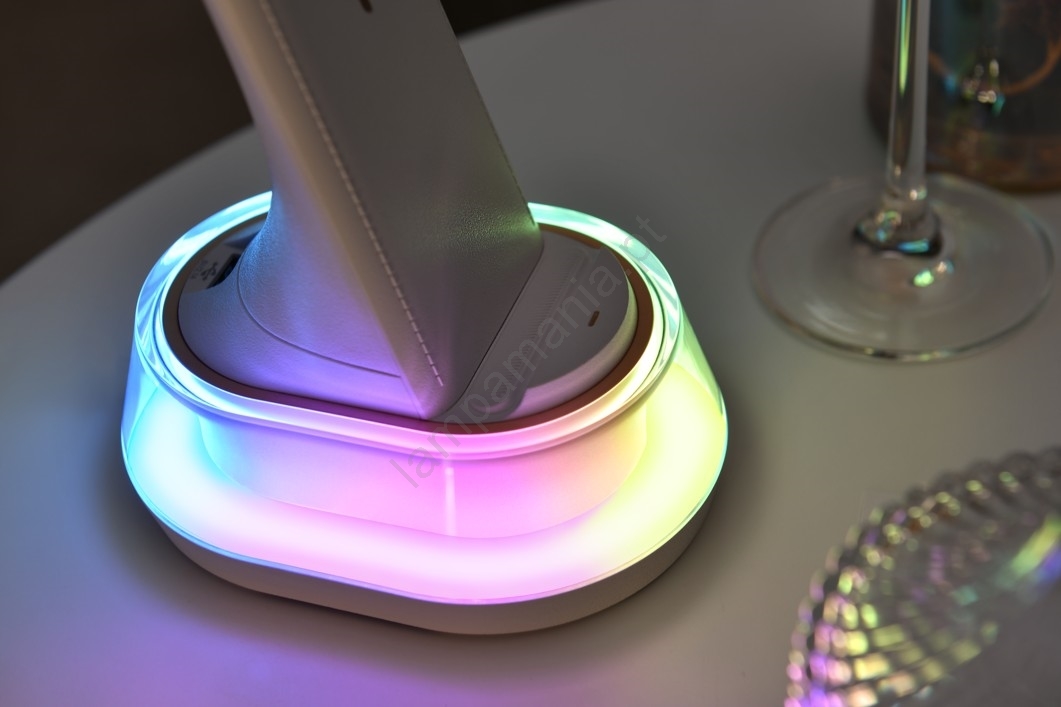 • Lâmpada de mesa LED RGB regulável com carregamento sem fio CORELLA LED/7W/12/230V branca