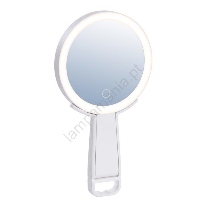 • O espelho pode ser facilmente pendurado, segurado confortavelmente na mão ou utilizado como espelho de mesa.