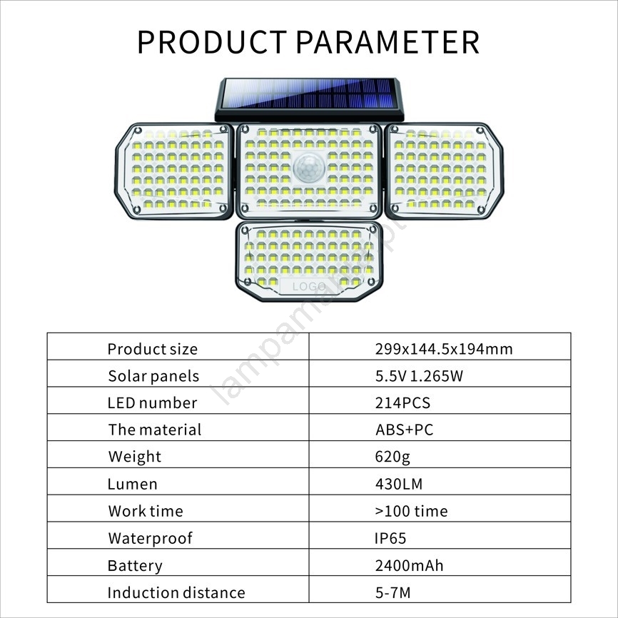 Iluminação solar de parede LED com sensor LED/5W/5,5V IP65 2400 mAh