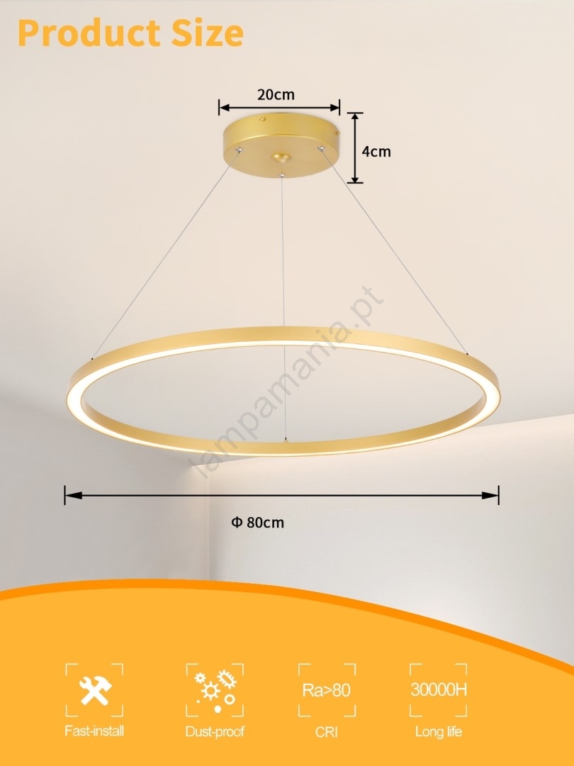 • O círculo brilha para baixo, para que o candelabro não o deslumbre como nas variantes que brilham para dentro ou para os lados.