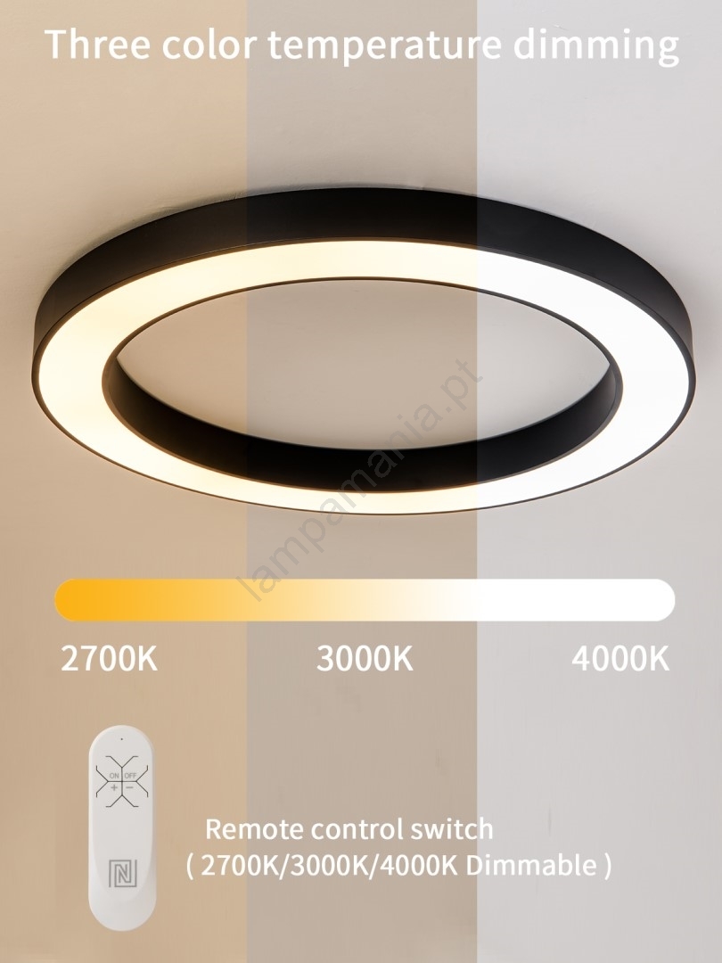 • Função de dimmer e ajuste da cor da luz branca via controle remoto.