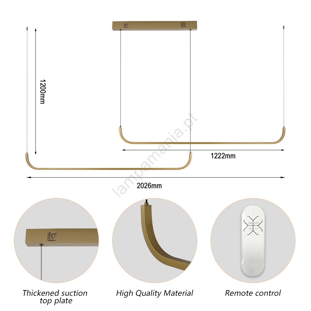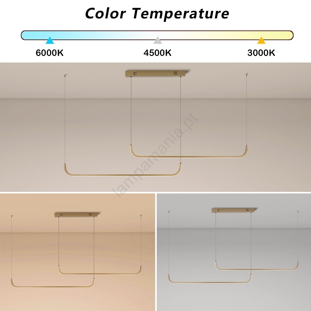 • O comprimento total do lustre é variável conforme o modo de suspensão: 120 cm, 160 cm, 280 cm.