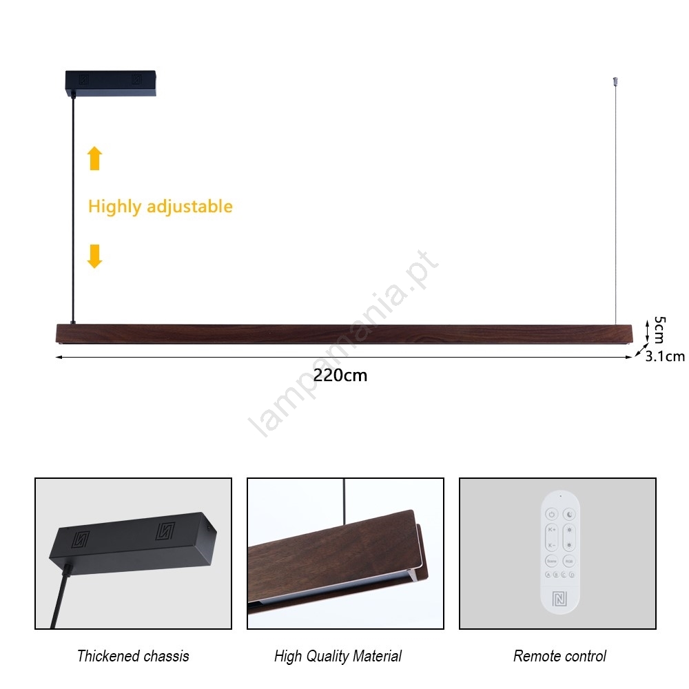 • Immax NEO 07302L - Lustre pendente LED regulável MADEIRA LED/44W/230V Wi-Fi Tuya, 202 cm, acabamento nogueira + controlo remoto