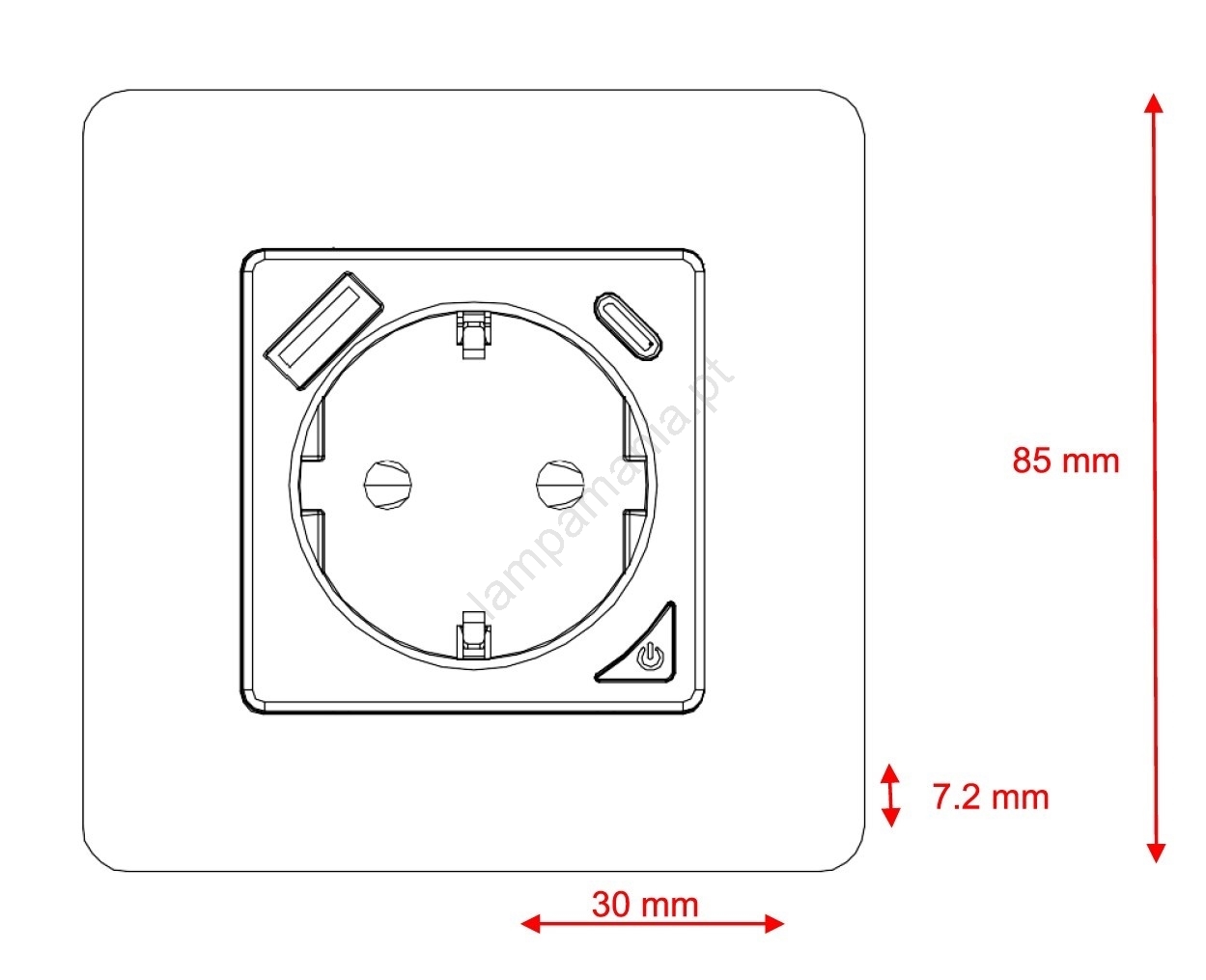 • Tomada confiável que economiza tempo e energia, equipada com saídas práticas 1x USB-A e 1x USB-C com parâmetros de 5.0V, 5V/3.4A Máx e função Power Delivery de 20W.