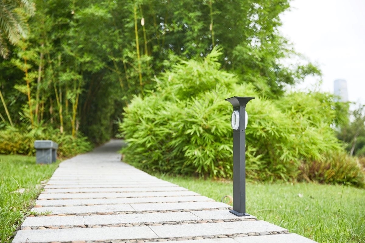 • Luminária LED para postes, cria um efeito de luz interessante ao anoitecer, oferecendo iluminação orientativa ao redor de caminhos e entradas, tornando o acesso noturno à casa mais agradável.