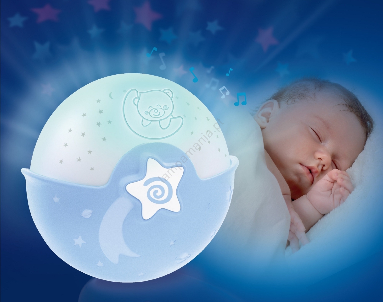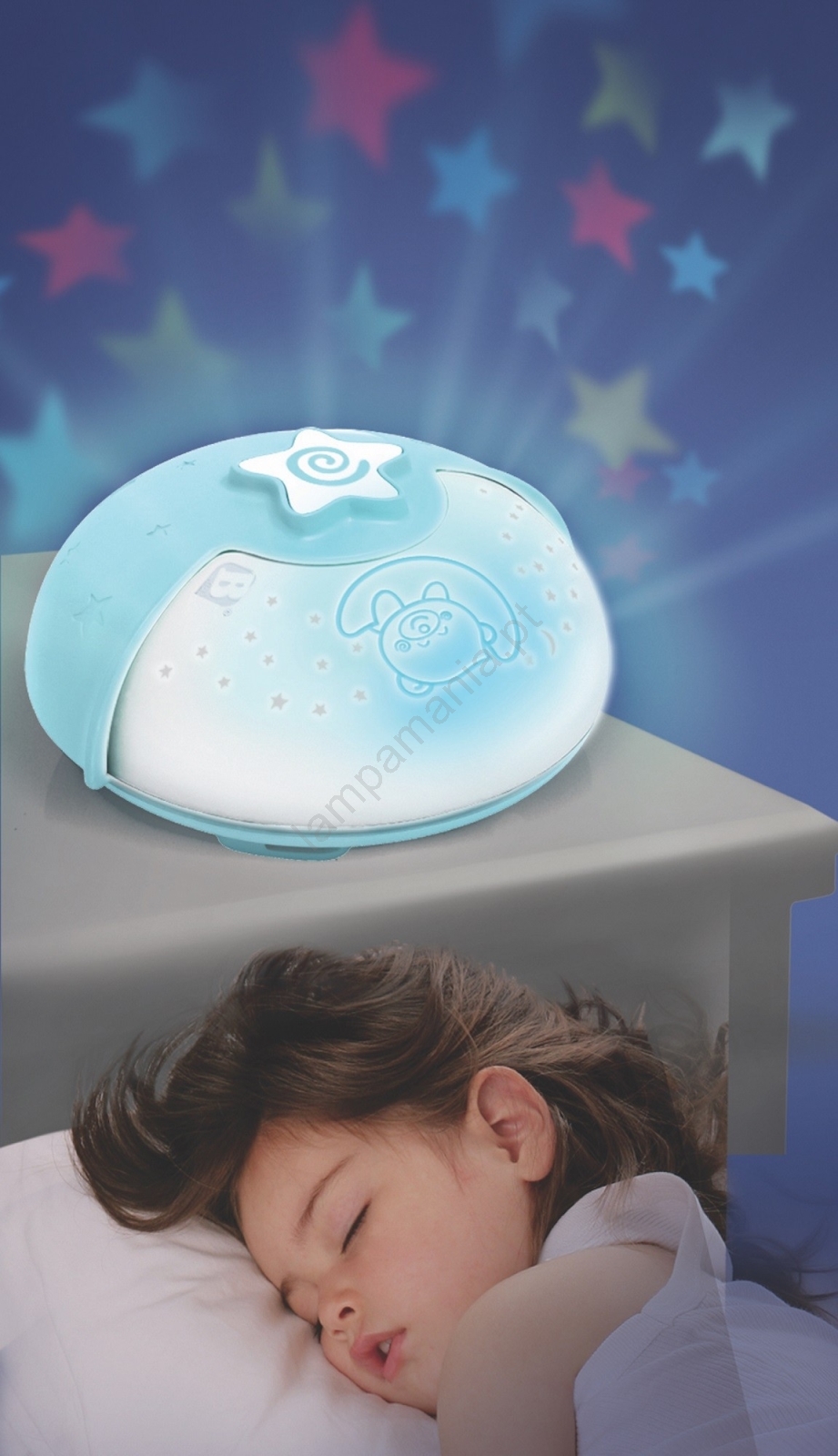 • Infantino - Candeeiro pequeno para crianças com projetor 3xAA azul