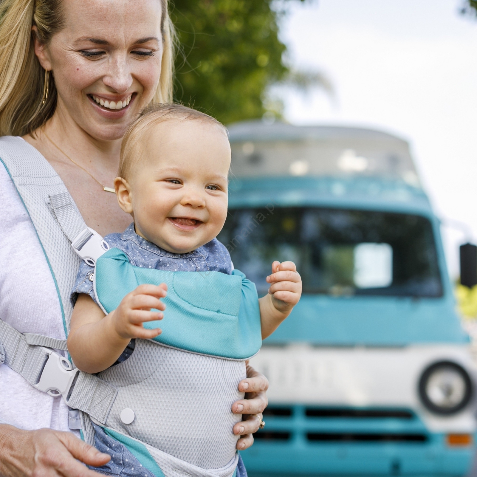 • O material de malha respirável permite a circulação do ar, aumentando o conforto tanto para o bebé como para os pais durante os dias quentes.