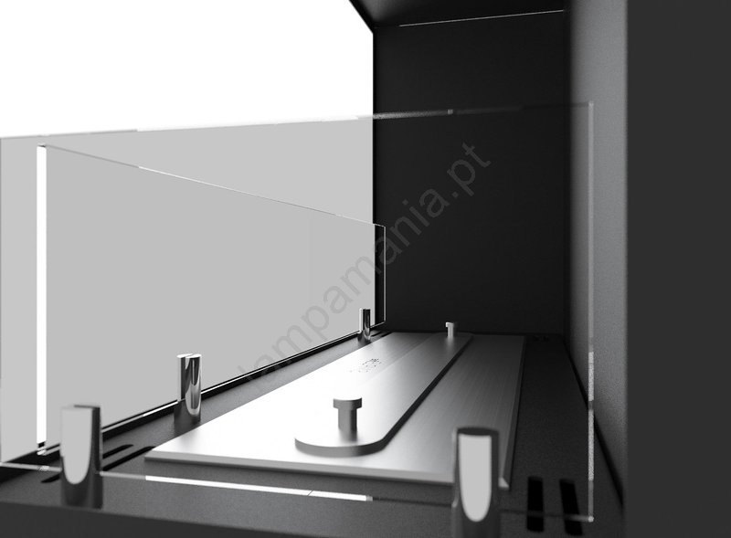 • A lareira a bioetanol está equipada com um vidro de proteção de 4 mm de espessura em vidro temperado.