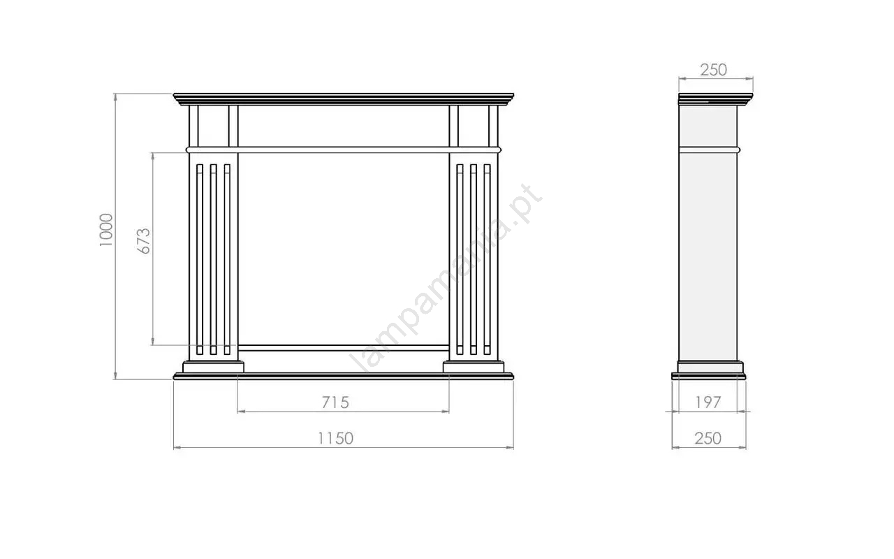 • Dimensões da lareira: 100 x 115 x 25 cm.