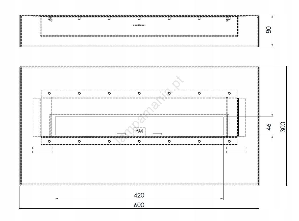 • Dimensões da lareira: 8 x 60 x 30 cm.