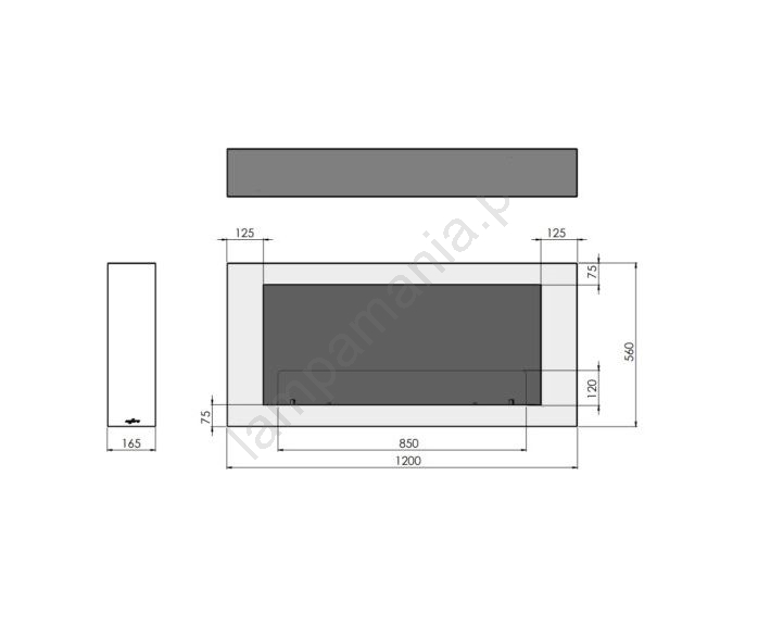 • Dimensões da lareira: 56 x 120 x 16,5 cm.