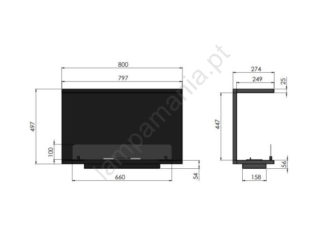 • Dimensões da lareira: 450 x 80 x 25 cm.
