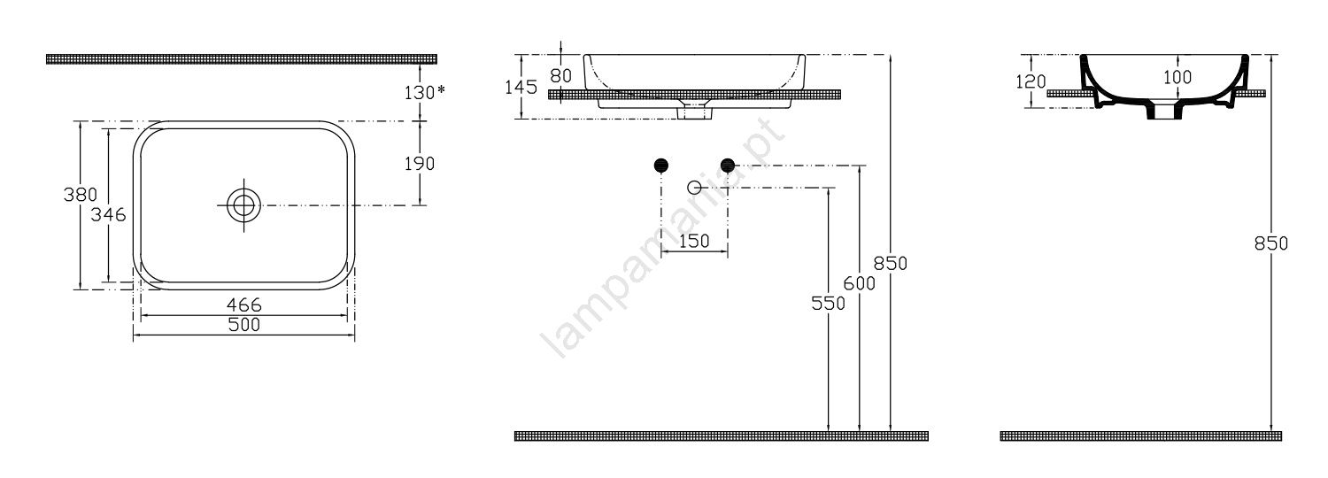 • Pode ser fixado à parede, colocado sobre a bancada ou embutido na mesma.