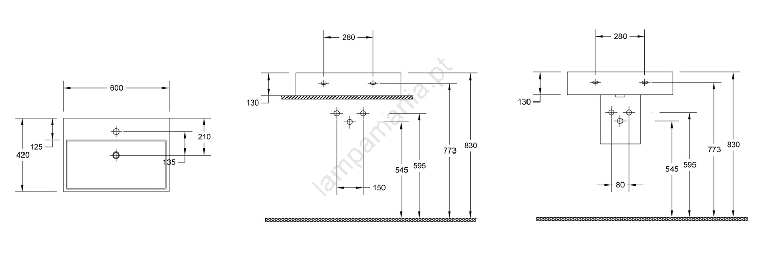 • O lavatório não tem parede traseira esmaltada.