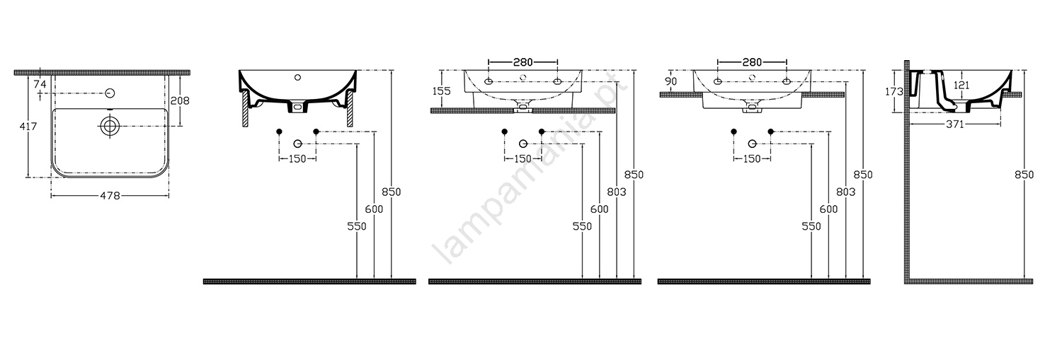 • Este lavatório foi concebido com uma borda fina, seguindo uma tendência moderna na cerâmica.