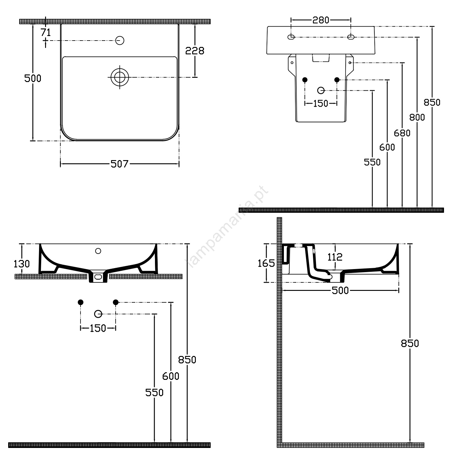 • O lavatório pode ser fixado à parede, colocado sobre a bancada ou embutido na bancada.