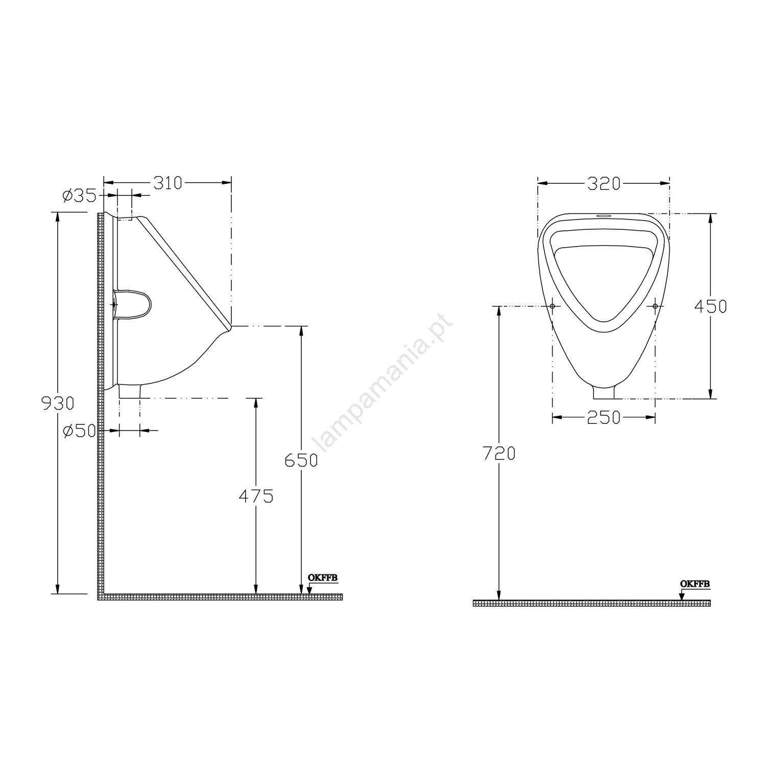 Isvea - Mictório com ligação superior, cerâmica/branco