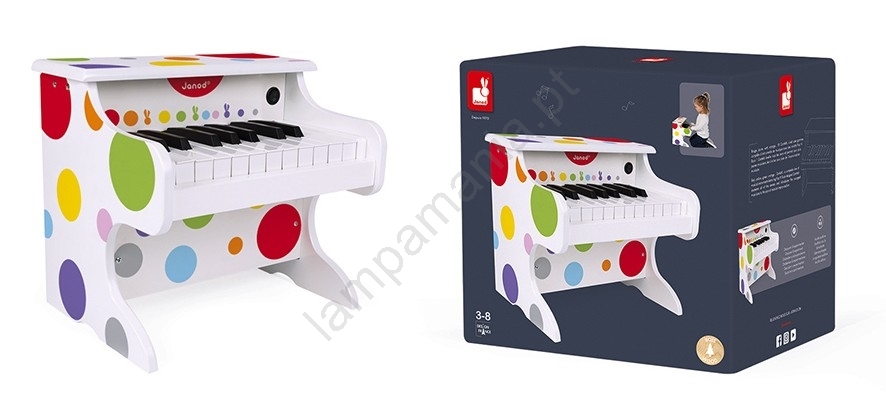 • Piano eletrônico de madeira para crianças a partir de 3 anos.