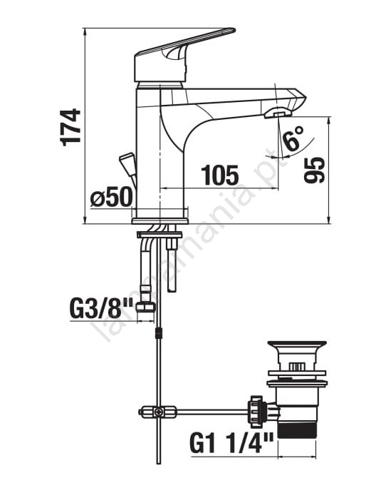 • A torneira inclui um escoamento automático em plástico que permite abrir e fechar facilmente a válvula de drenagem.