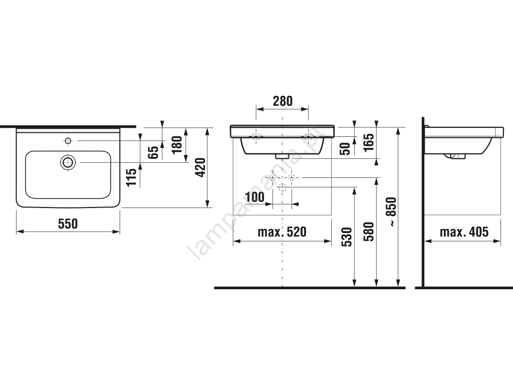 • A embalagem inclui o lavatório sem sifão e torneira.