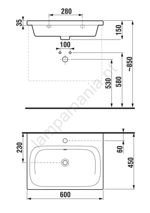 • A embalagem inclui o lavatório sem sifão e torneira.
