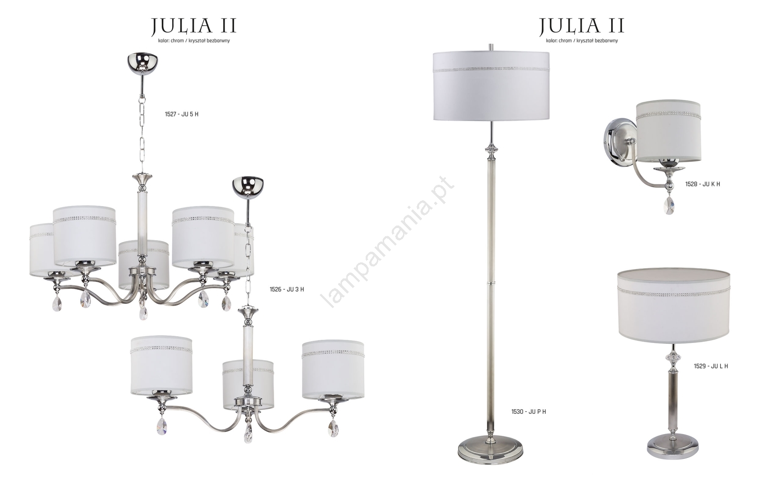 Jupiter 1526 - JU 3 H - Candelabro JULIA II 3xE27/60W caracteriza-se por um design agradável e funcional.  Uma lâmpada com casquilho E27 é adequada para a iluminação Aqui, pode comprar outras lâmpadas a preços vantajosos. Terá um complemento interessante para a sua casa.