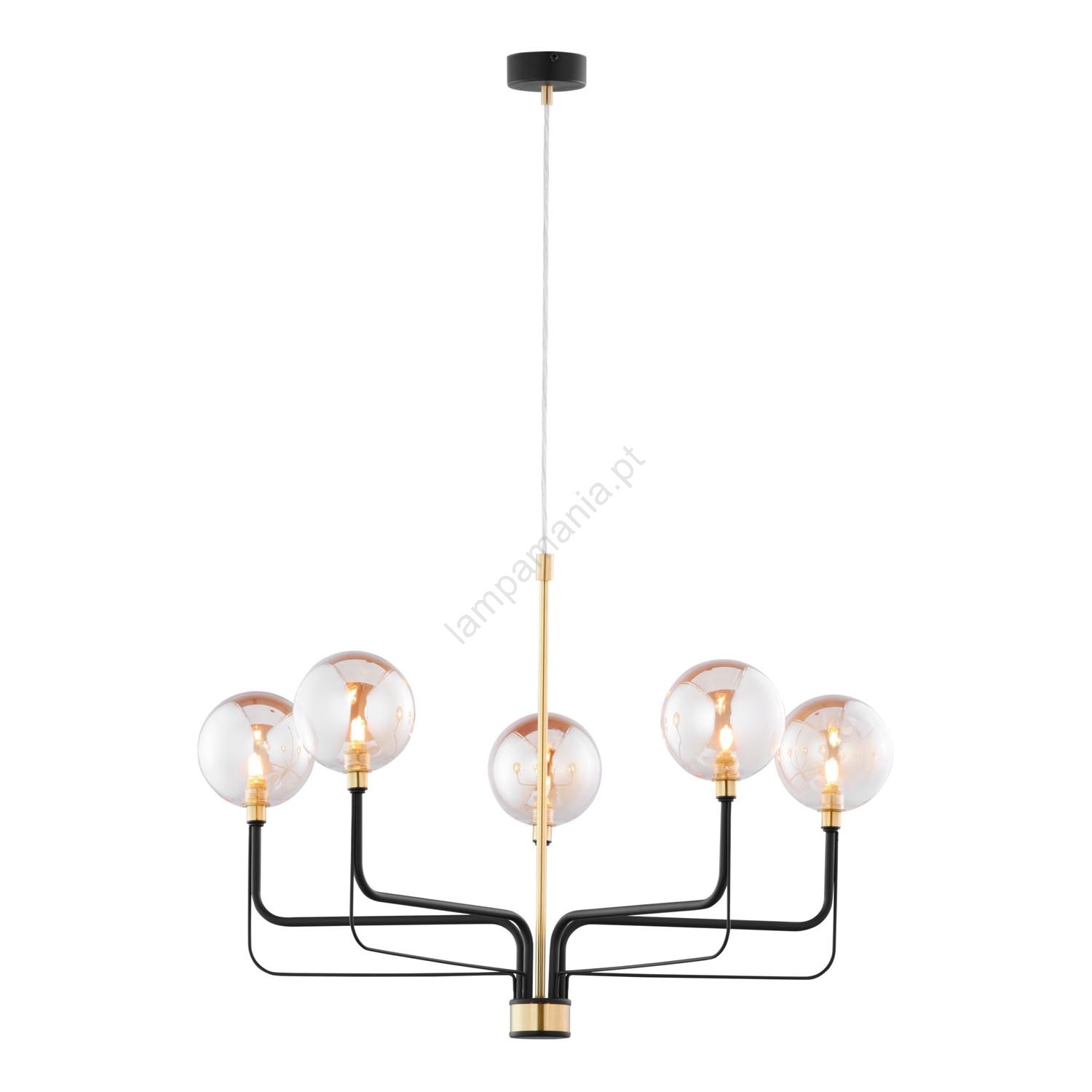 Jupiter 1886 - Lustre suspenso em cabo ERIS 5xG9/14W/230V dourado/preto/bege fumê caracteriza-se por um design agradável e funcional.  Uma lâmpada com casquilho G9 é adequada para a iluminação Aqui, pode comprar outras lâmpadas a preços vantajosos. Terá um complemento interessante para a sua casa.
