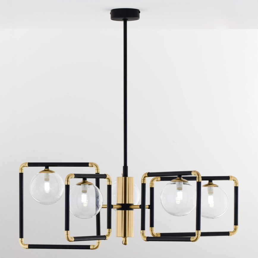 Jupiter 1985 - Candelabro suspenso IBRA 5xG9/10W/230V preto/dourada caracteriza-se por um design agradável e funcional.  Uma lâmpada com casquilho G9 é adequada para a iluminação Aqui, pode comprar outras lâmpadas a preços vantajosos. Terá um complemento interessante para a sua casa.