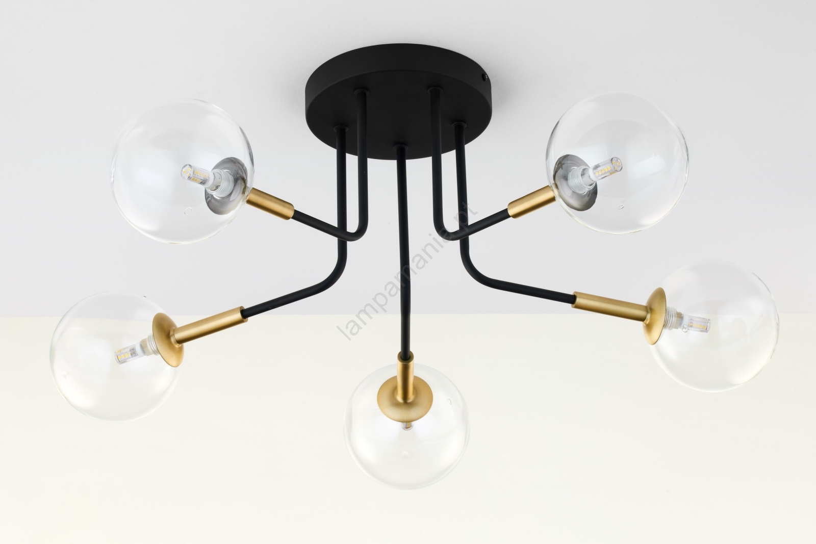 Jupiter 2040 - Candeeiro suspenso BURANO 5xG9/10W/230V preto/dourado/transparente caracteriza-se por um design agradável e funcional.  Uma lâmpada com casquilho G9 é adequada para a iluminação Aqui, pode comprar outras lâmpadas a preços vantajosos. Terá um complemento interessante para a sua casa.