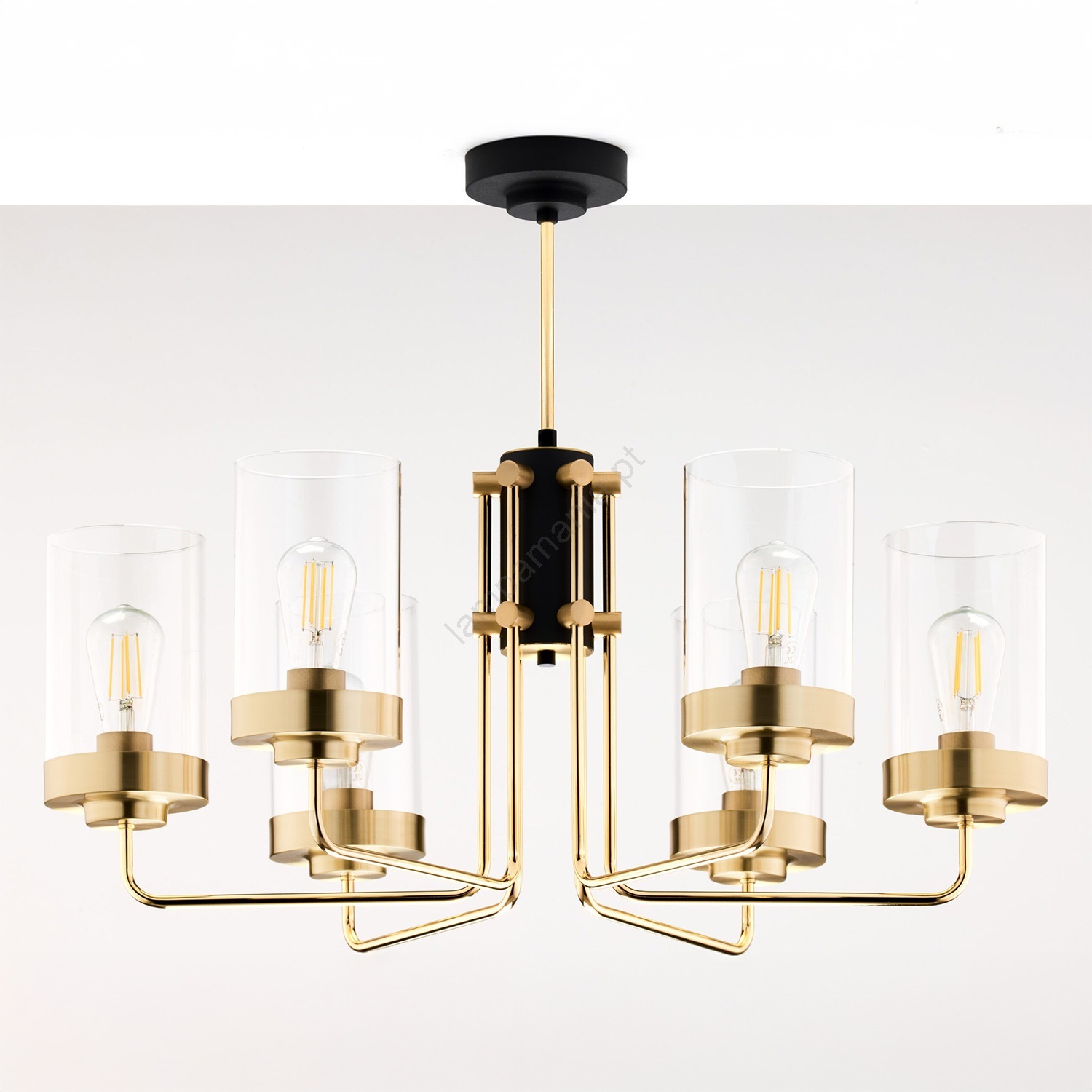 Jupiter 2089 - Lustre em haste RAMIREZ 6xE27/15W/230V dourado/preto caracteriza-se por um design agradável e funcional.  Uma lâmpada com casquilho E27 é adequada para a iluminação Aqui, pode comprar outras lâmpadas a preços vantajosos. Terá um complemento interessante para a sua casa.