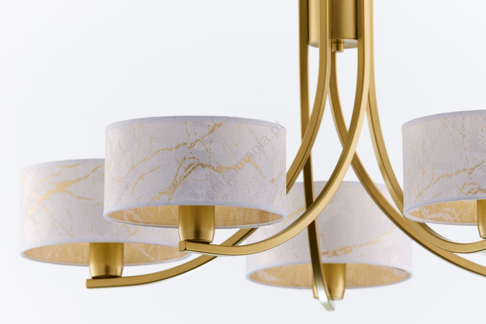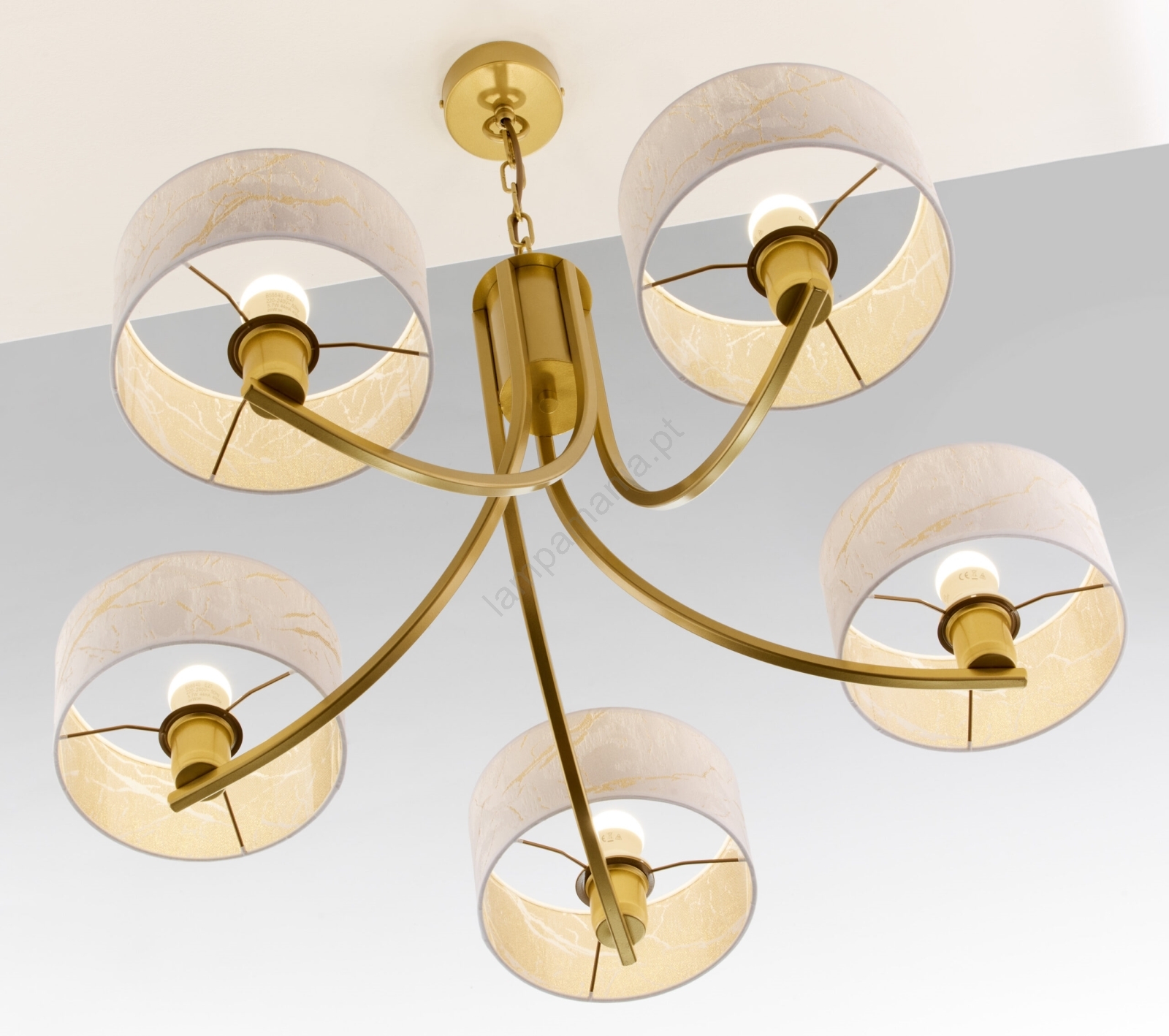 Jupiter 2097 - Lustre com corrente ARTHUR 5xE27/15W/230V branco/dourado/acabamento em mármore caracteriza-se por um design agradável e funcional.  Uma lâmpada com casquilho E27 é adequada para a iluminação Aqui, pode comprar outras lâmpadas a preços vantajosos. Terá um complemento interessante para a sua casa.