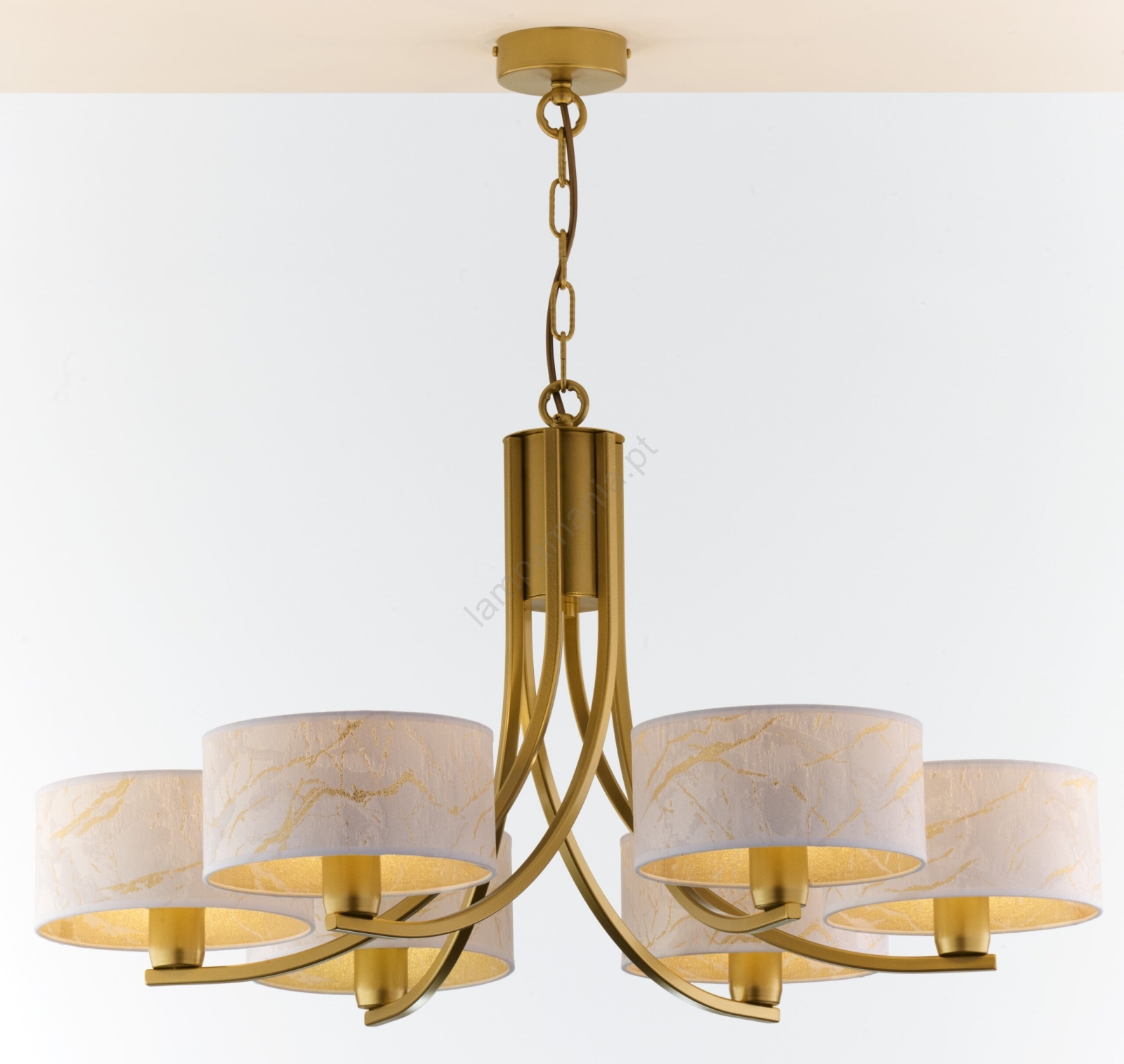 Jupiter 2098 - Lustre em corrente ARTHUR 6xE27/15W/230V branco/dourado/acabamento em mármore caracteriza-se por um design agradável e funcional.  Uma lâmpada com casquilho E27 é adequada para a iluminação Aqui, pode comprar outras lâmpadas a preços vantajosos. Terá um complemento interessante para a sua casa.