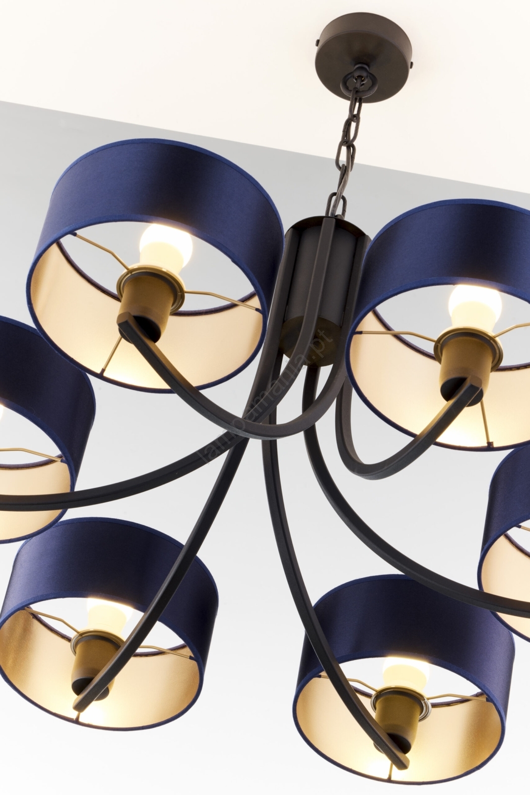 Jupiter 2102 - Lustre suspenso por corrente ARTHUR 6xE27/15W/230V azul/preto caracteriza-se por um design agradável e funcional.  Uma lâmpada com casquilho E27 é adequada para a iluminação Aqui, pode comprar outras lâmpadas a preços vantajosos. Terá um complemento interessante para a sua casa.