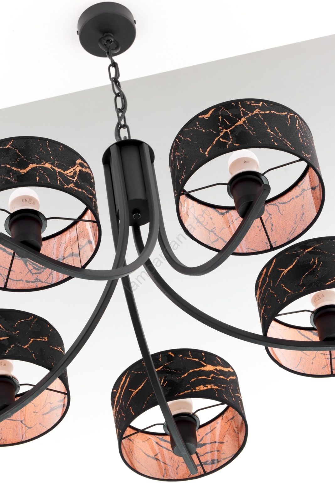 Jupiter 2107 - Lustre com corrente ARTHUR 5xE27/15W/230V preto/laranja/acabamento em mármore